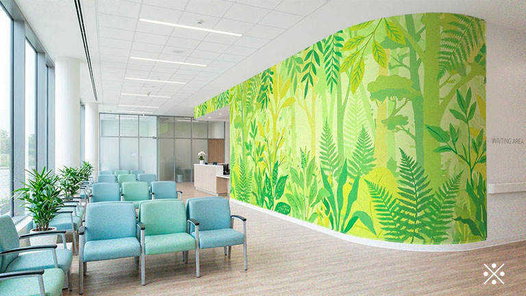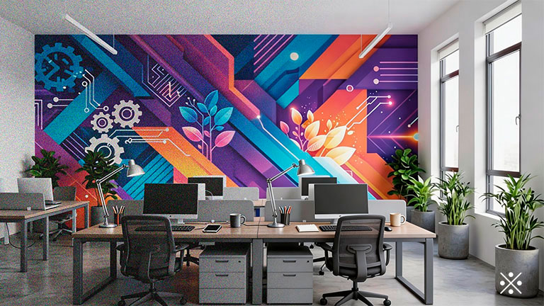 企業のビジョンを視覚化したり、華やかな風景を壁一面に施したりすることで、従業員のモチベーション向上やクリエイティビティを刺激する快適なオフィス環境を構築します。