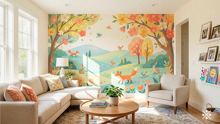 リビングや子供部屋に、家族の趣味や好みに合わせた壁紙を制作。写真やイラストをプリントして、世界に一つだけの空間を演出。