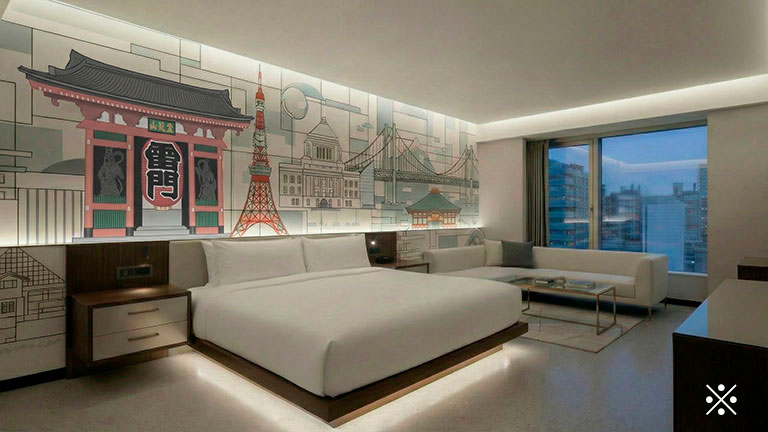 各客室に異なるデザインの壁紙を施し、顧客に特別な宿泊体験を提供。地域の文化や観光名所をテーマにしたデザインも人気。
