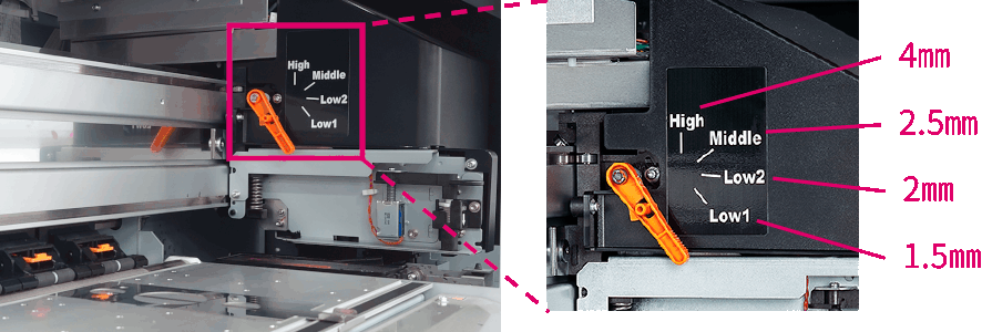 PG setting enhanced with 4 steps allows the operators to select the optimal print head height for the media being used. It reduces the risk of print head contact and maintain stable print quality.