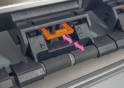 Media feeding power is affected by pressure and paper thickness. This pressure mode can be set to four levels: high, middle, low and partial pressure by adjusting the position of the media set lever and the pressure arms, which expands media feed capability. Furthermore, media cockling can be minimized by canceling multiple pressure rollers individually.