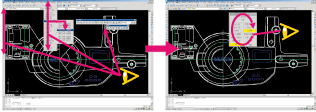 ディスプレイを製図板のように使いたい。ドラッグアクションメニューは、この設計者の根強いニーズにも対応。必要に応じて呼び出したメニューは選択直後に消えるので、貴重なディスプレイエリアを無駄に消費することがありません。だから、複数の図面を開いてもディスプレイはつねにクリーン。まさしく製図板感覚のデザイン環境を実現しました。