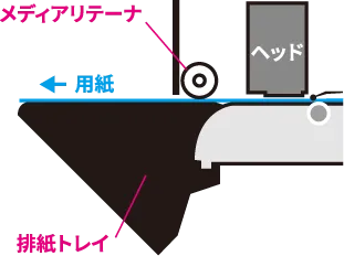 排紙トレイとメディアリテーナで用紙の反りや曲がりを押さえることで、ヘッドとの距離を一定に保ち安定した画質を維持します。