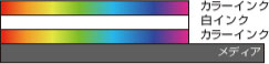 | アンダーレイ印刷 | 白インクを印刷し、その上にKCMYでカラーで印刷 | |