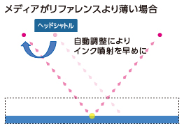 メディアが薄い場合や厚い場合では、インクの着弾位置が異なります。インクの噴射タイミングを早めたり、遅らせることでインクを正確な位置へ着弾させることが必要となります。MUTOHのドロップマスター技術は、この煩わしい調整作業を軽減。メディアの厚さを事前に入力することで双方向印刷時のインク噴射タイミングを自動で計算、調整します。このドロップマスター技術により、全体的に画質の鮮明度と滑らかさがUP。大幅な時間の節約にもつながります。