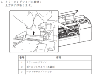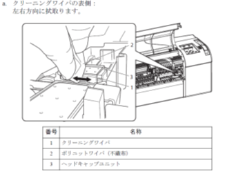 ワイパーの清掃を実施後、ヘッドクリーニングを数回行い現象が改善されるかご確認ください