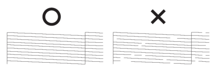 ノズルチェックを実施し抜けがある場合はクリーニングを実施してください。