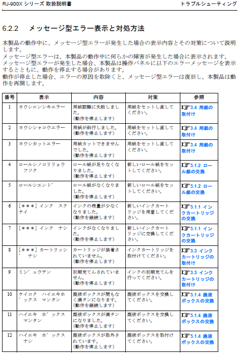 ・6トラブルシューティング→6.2表示の詳細→6.2.2メッセージ型エラー表示と対処方法 P.207参照
