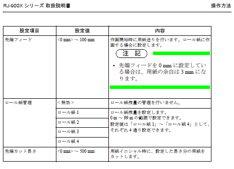 プロッター本体の機能に「ロール紙管理」があります。