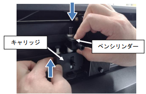 • ペンを下げるときキャリッジが下がらないように軽く持ち上げながら、ペンシリンダーを 下してください。