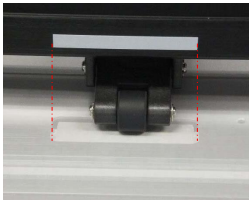 1. ピンチローラーは Y レール上の白テープの範 囲内に合わせてセットしてください。 白いテープの位置にグリッドローラーがあります。