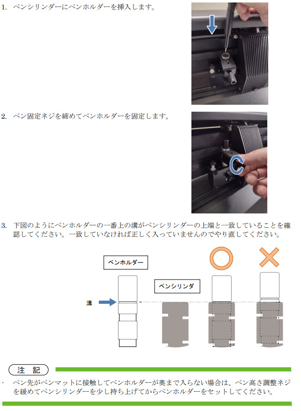 • ペン高さを正しく調整しないと、作画時に正しく描けません。