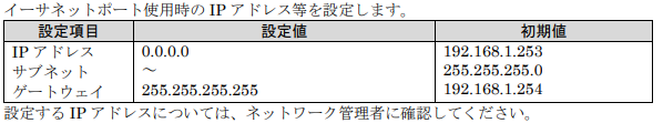 各種、ネットワーク(イーサーネット通信)の設定と