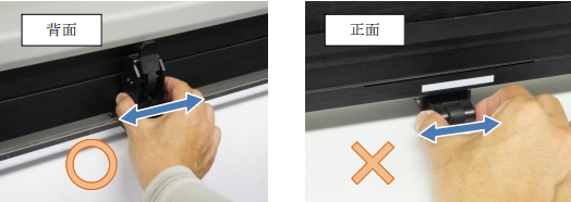 • ピンチローラーの位置調整は背面側から操作してください。 正面側から無理に操作しないでください、故障の原因になります。