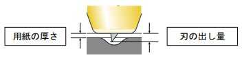 用紙の厚さより少しだけ長く設定してください。 目安として、用紙の切残しが無くなってから、ホルダー上部の目盛で2目盛(0.1mm)出すのが最適です。